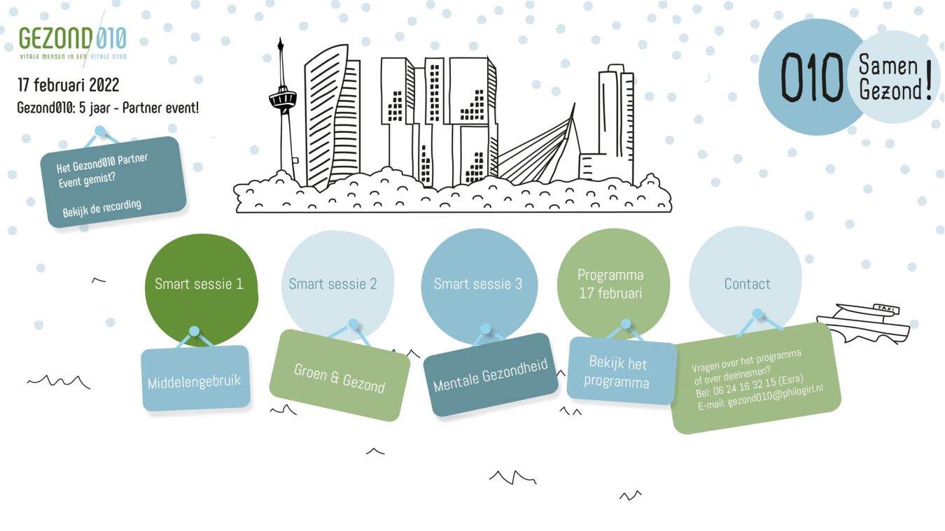 Dit jaar bestaat het Gezond010 netwerk van de gemeente Rotterdam alweer 5 jaar. Philogirl is door het team van Gezond010 gevraagd om het komende jaar de partner events en de satelliet meetings te organiseren.