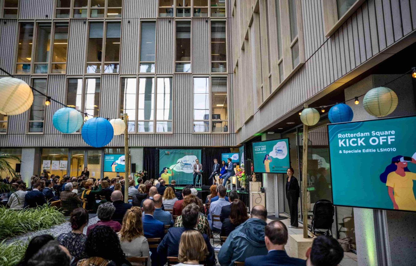 De activiteiten van Life Sciences & Health 010 (LSH010) werden op woensdag 22 maart 2023 tijdens de drukbezochte Kick-Off officieel overgedragen aan Rotterdam Square. De symbolische plaats hiervoor was de Tuin van Verbondenheid in het Erasmus MC. ‘Rotterdam Square wordt het dorpsplein waar onderwijs, onderzoekers, ondernemers en overheid elkaar tegenkomen.’